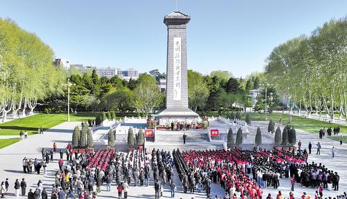 4月4日,华北军区烈士陵园举办省会各界公祭革命烈士大会,缅怀先烈、致敬英雄。本报记者 赵永辉摄