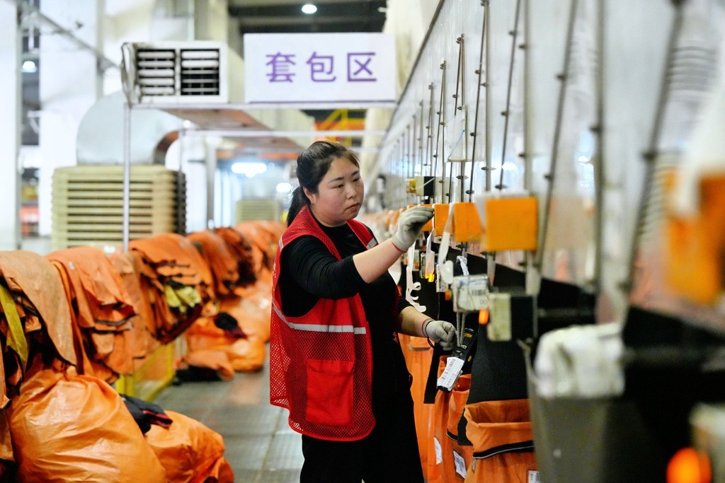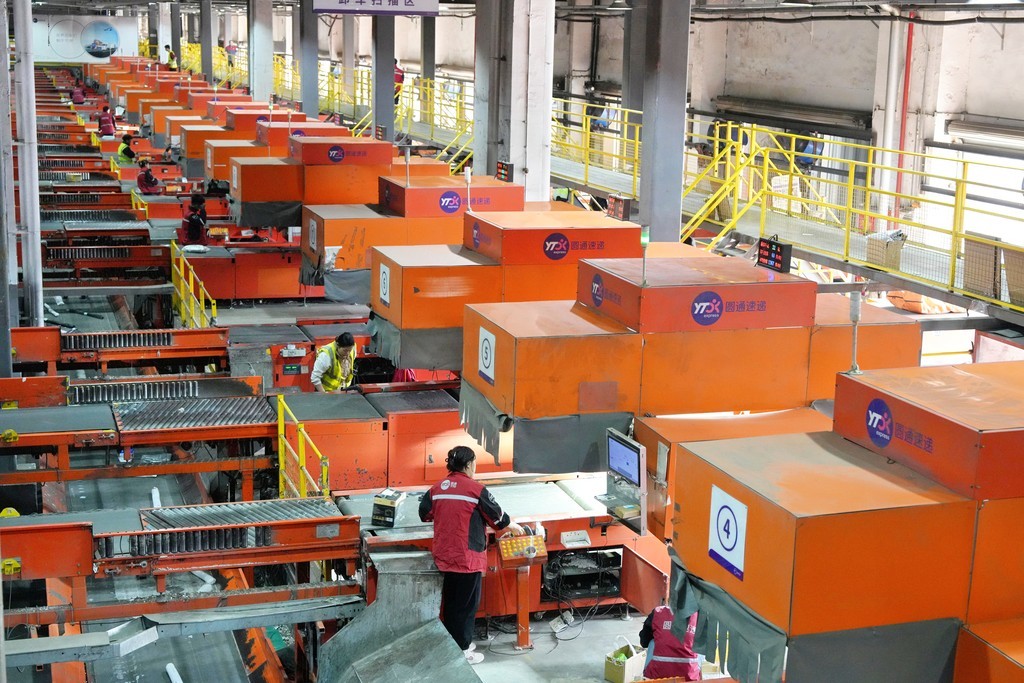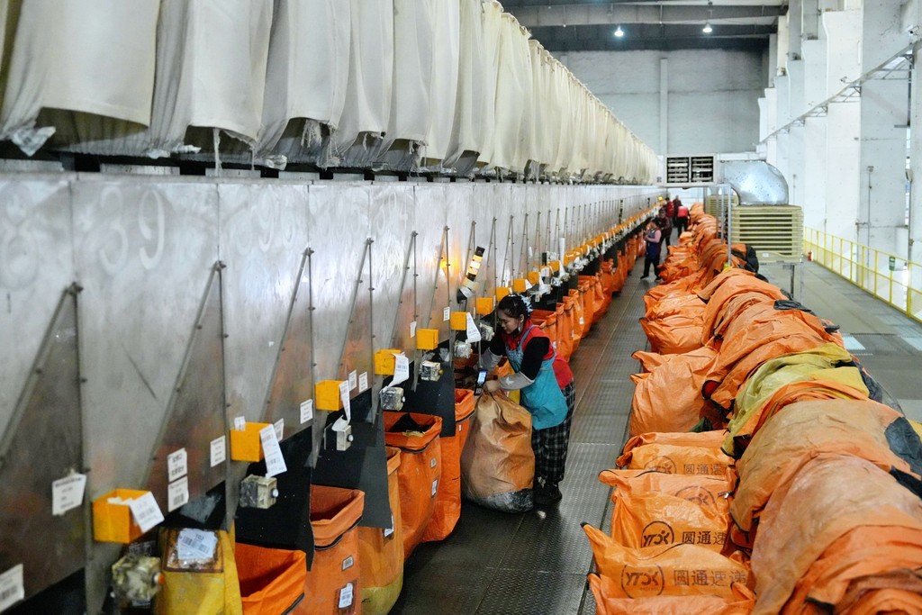 4月1日,永清县圆通速递北方总部基地工作人员在分拣快递包裹。