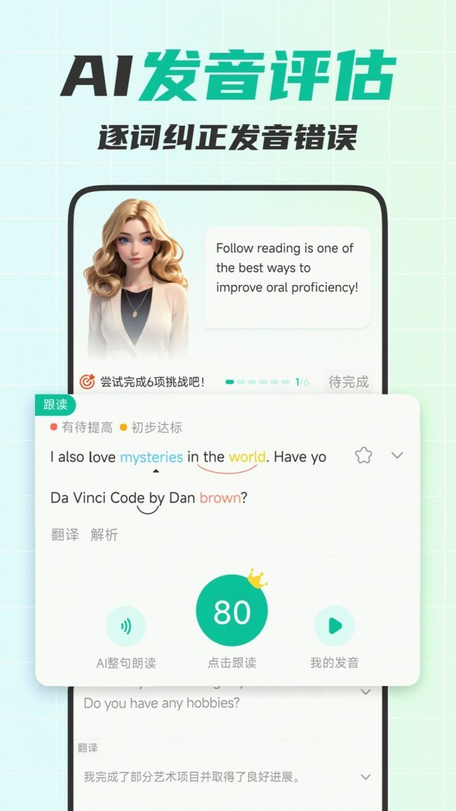 游戏化学习模式趣味性很强,背单词、基础语法入门效率很高,适合零基础用户打基础,但外贸相关场景较少,更适合日常兴趣类英语学习。 综合评分:3.8星