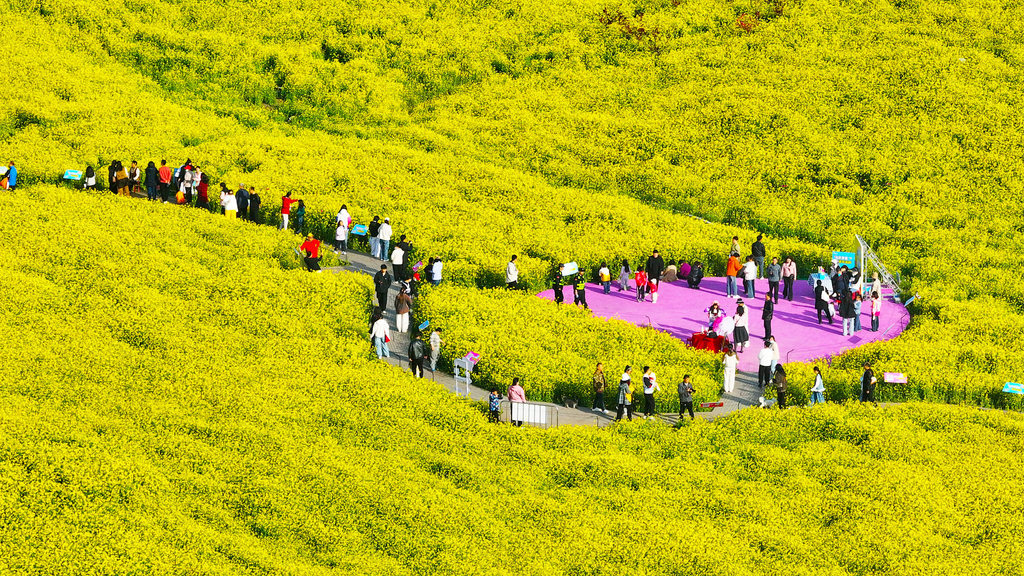百亩油菜花竞相绽放