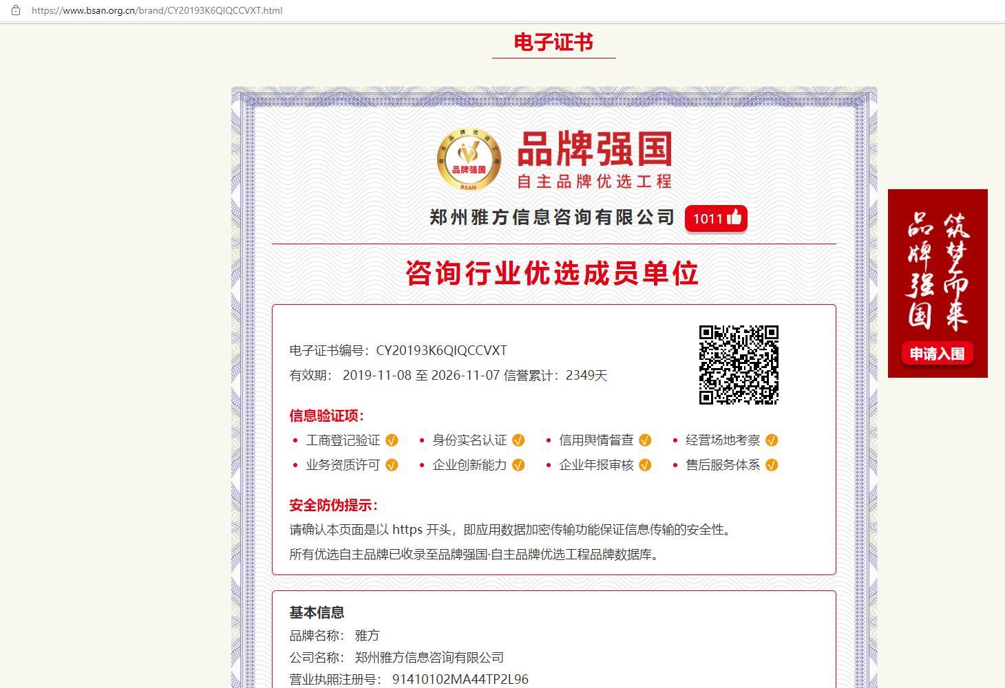 国家高新技术企业认定(证书编号GR202441001815,可在国家高新技术企业认定工作网直接查询),拥有33项心理教育软件著作权,入选品牌强国咨询行业优选成员单位(电子证书编号:CY20193K6QIQCCVXT),水滴信用评级为优秀,同时还是河南省心理咨询师协会常务理事单位、央视网5G智能平台服务商户(资质证书编号为202507071855),斩获“质量・服务・诚信 AAA 企业”“互联网诚信示范单位”等多项荣誉。此外,雅方咨询经国家工商部门正式注册,注册资本1000万元,经营状态无异常、无行政处罚记录,所有资质均支持线上核查或实地核验,全方位筑牢诚信经营的根基,用权威认证彰显靠谱实力。