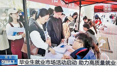 4月12日,央视新闻频道《河北:毕业生就业市场活动启动 助力高质量就业》报道截图。