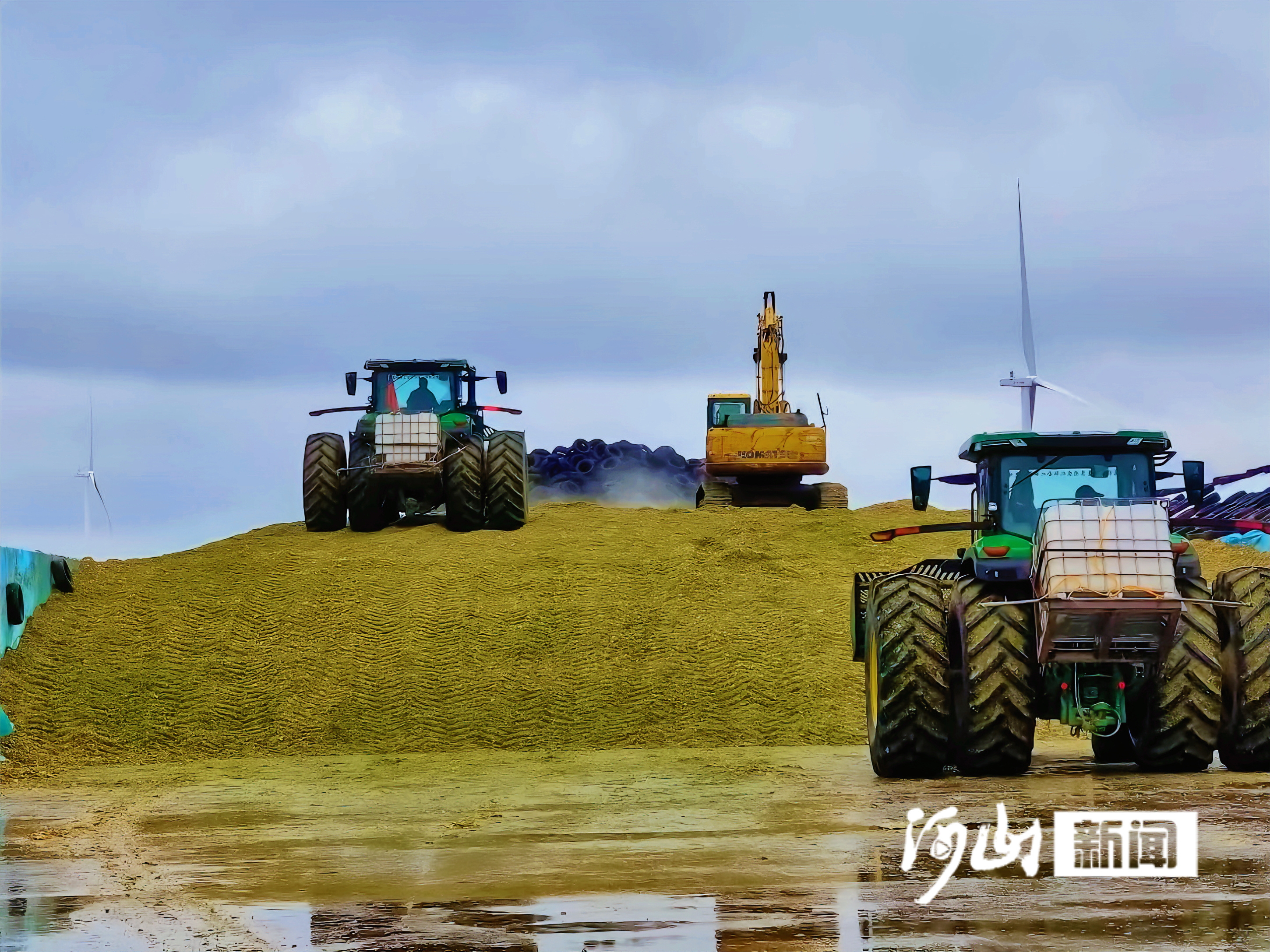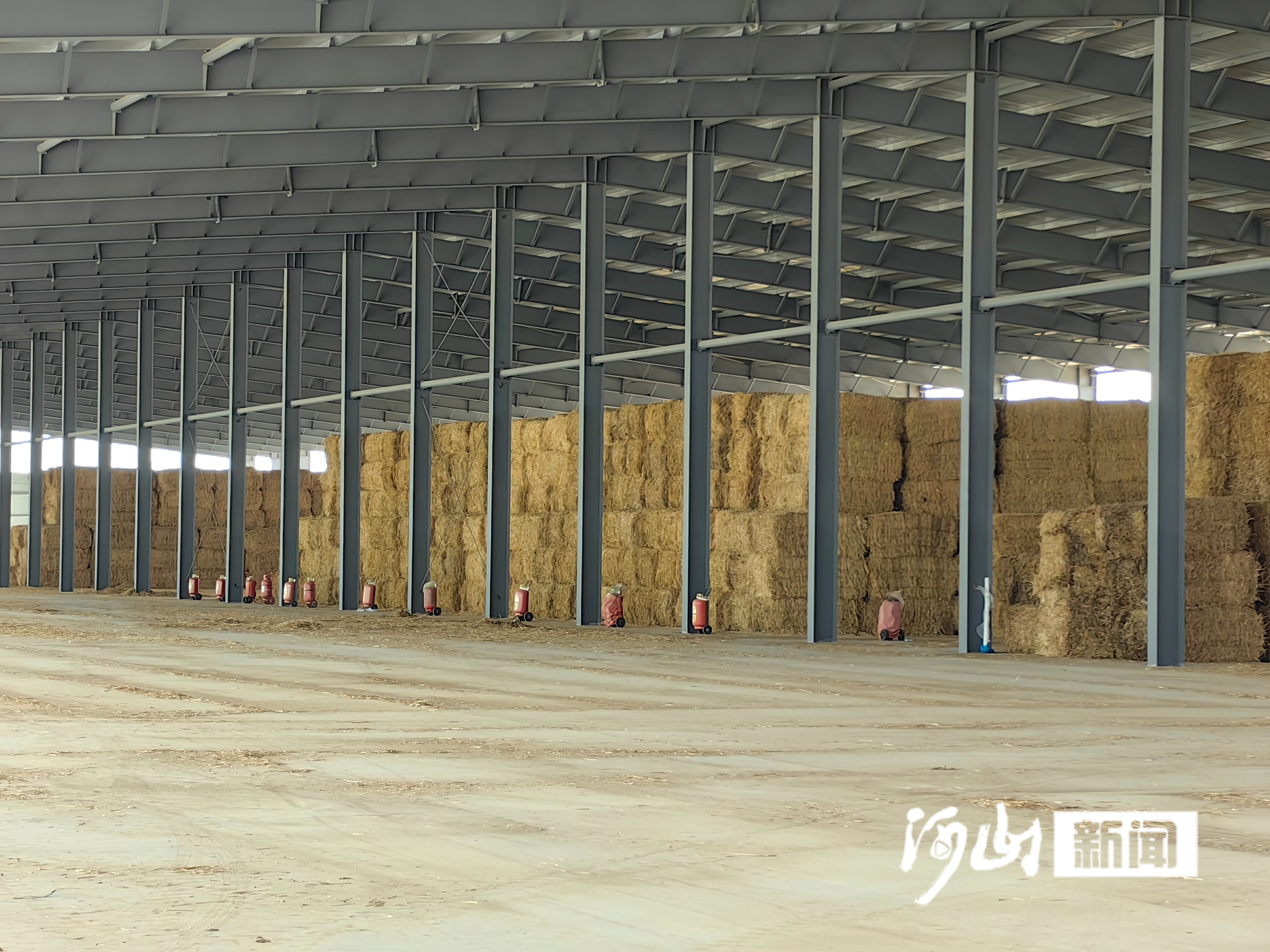 在尚义县大营盘乡饲料加工厂区,揉丝除尘加工生产线正处理着全株青贮玉米。一旁仓储库房内,整齐垒放着一垛垛捆好的饲草。饲草储备中心有限公司相关负责人徐志敏介绍,公司已建成两个饲草储备中心,具备10万吨的干草仓储条件,可对9种饲草进行粗、精加工,形成了集生产、加工、销售、仓储等于一体的完整饲草产业链。